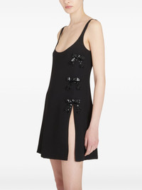 bow detailing short dress Highlights - Black - Crepe texture - Bow detailing - Concealed rear zip fastening - Sleeveless - Side slit - Thigh-length - Straight hem - Open back Made in Italy Composition Viscose 100%