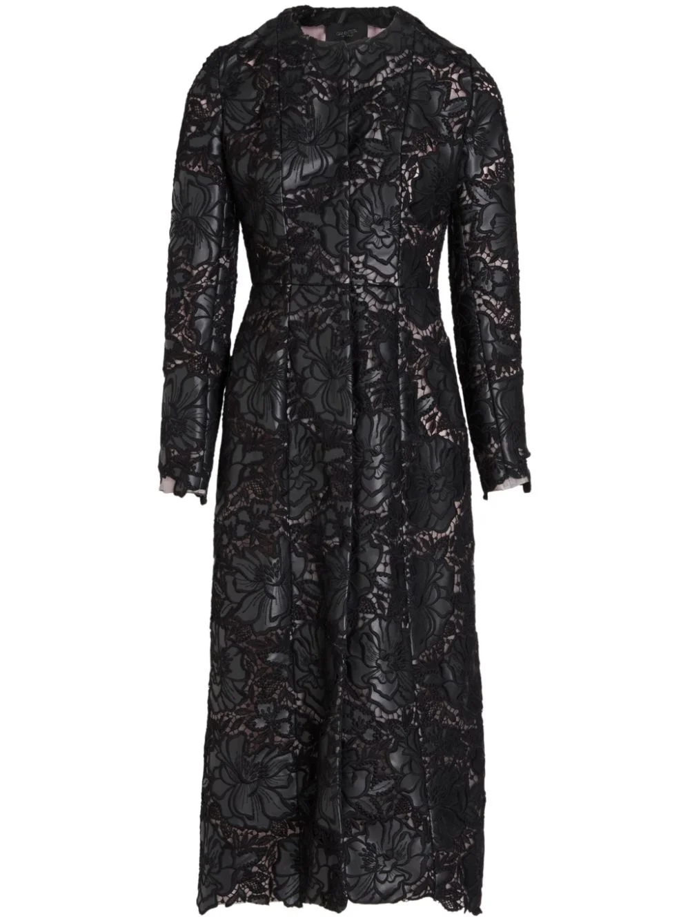 embroidered-design single-breasted coat Highlights - Black - Embroidered design - Round neck - Concealed front fastening - Long sleeves - Straight hem - Mid-length Made in Italy Composition Polyurethane 44%, Polypropylene 28%, Fabric 28% Washing instructions Dry Clean Only