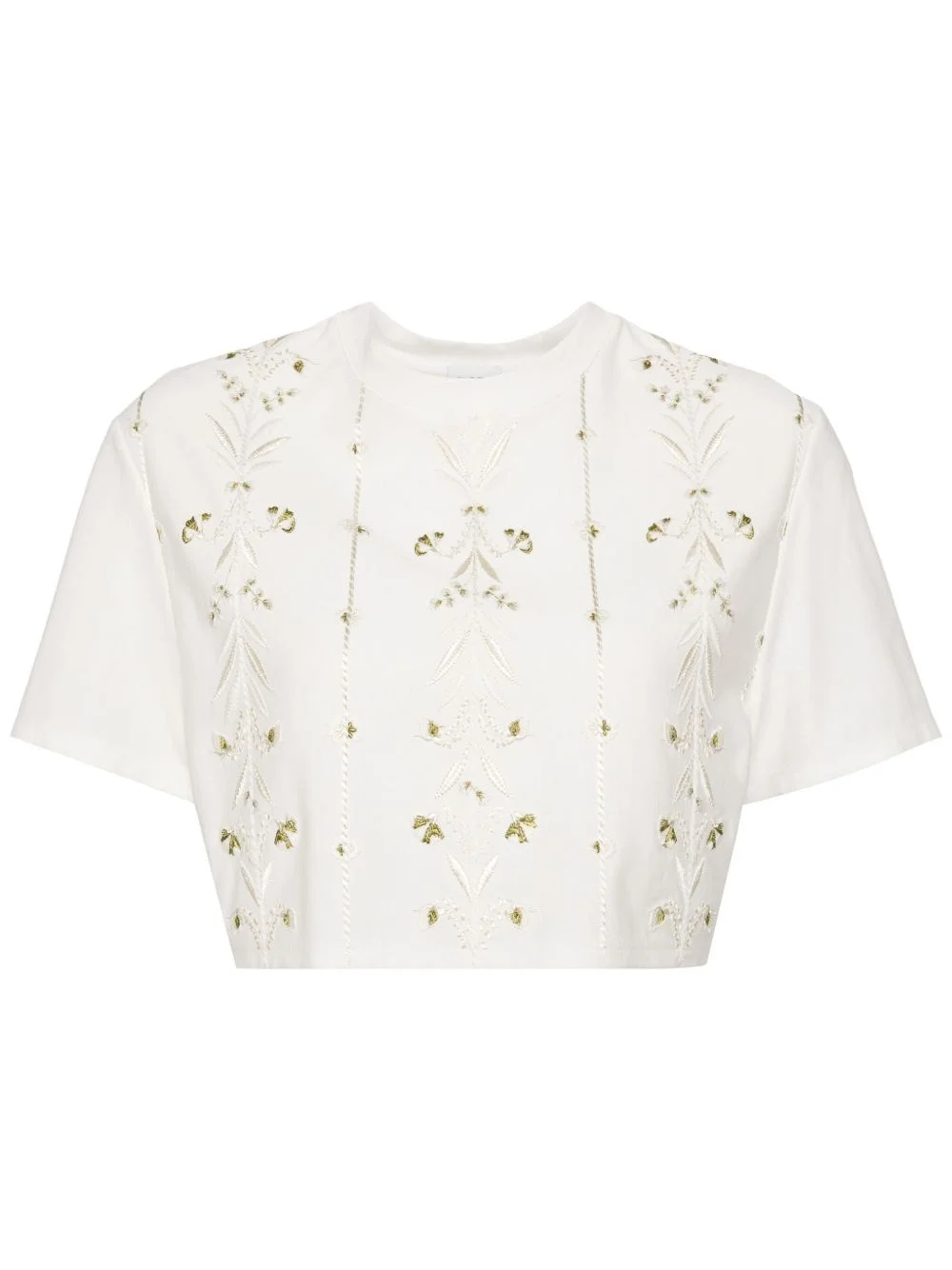 embroidered cotton croped top Highlights - White/green - Cotton - Embroidered design - Floral embroidery - Crew neck - Short sleeves - Straight hem Made in Italy Composition Cotton 100%