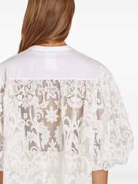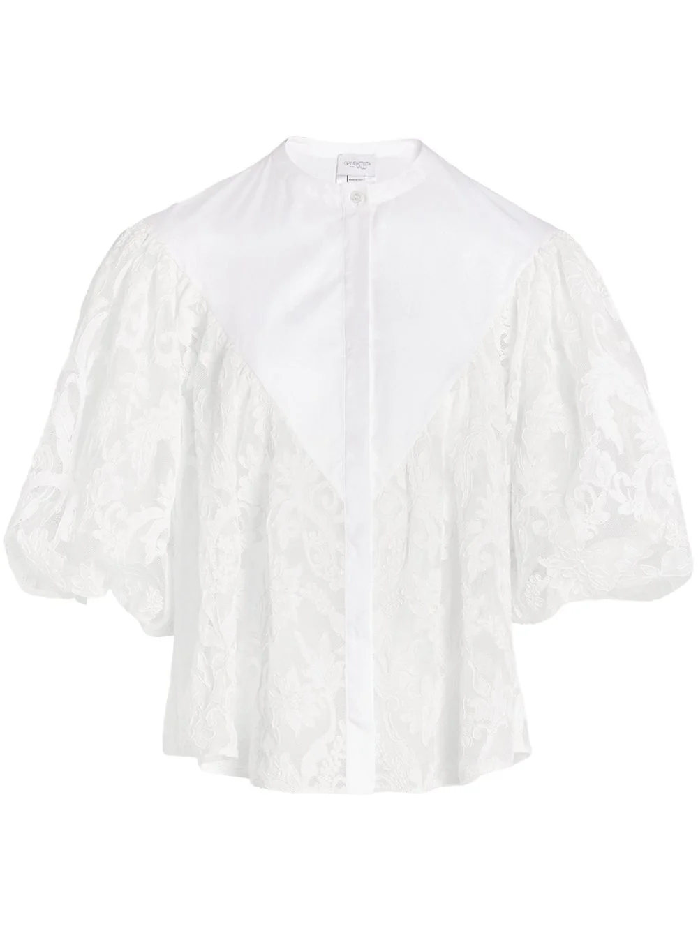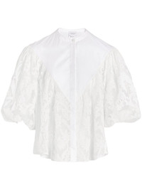 embroidered lace blouse Highlights - White - Front button fastening - Round neck - Three-quarter length puff sleeves - Straight hem Made in Italy Composition Polyester 100%