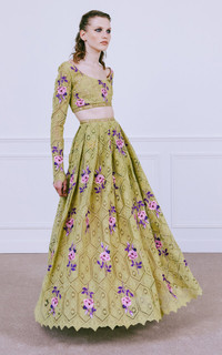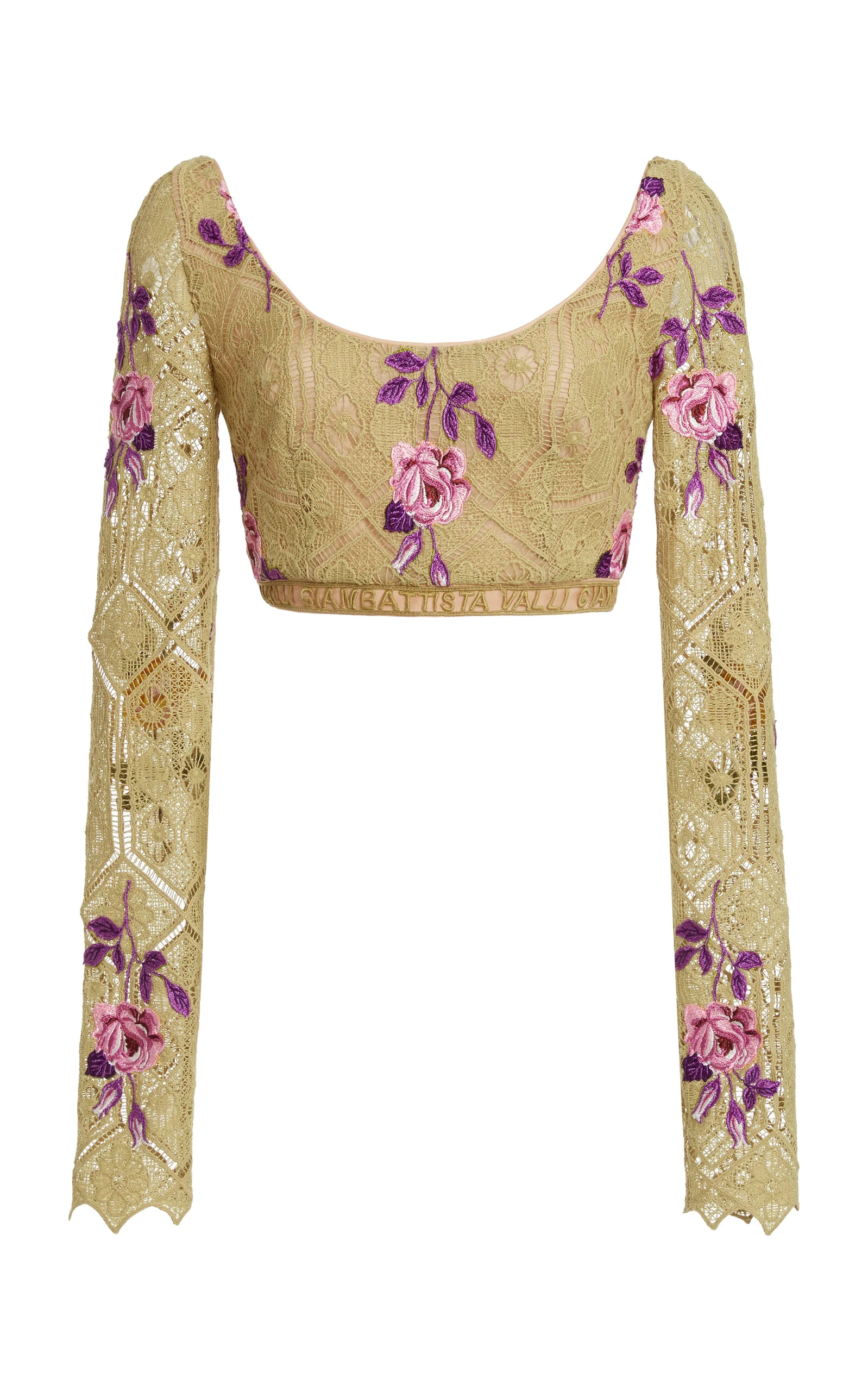 PRODUCT DETAILS - As seen in the Resort '24 lookbook - Slim fit, boat neck, long sleeves, embroidered, cropped hem - Unlined - Composition: TBD - Color: green - Hook and eye fastening along back - Made in Italy SIZE & FIT - Model is wearing a size IT 40 - This item fits true to size, we suggest taking your usual size