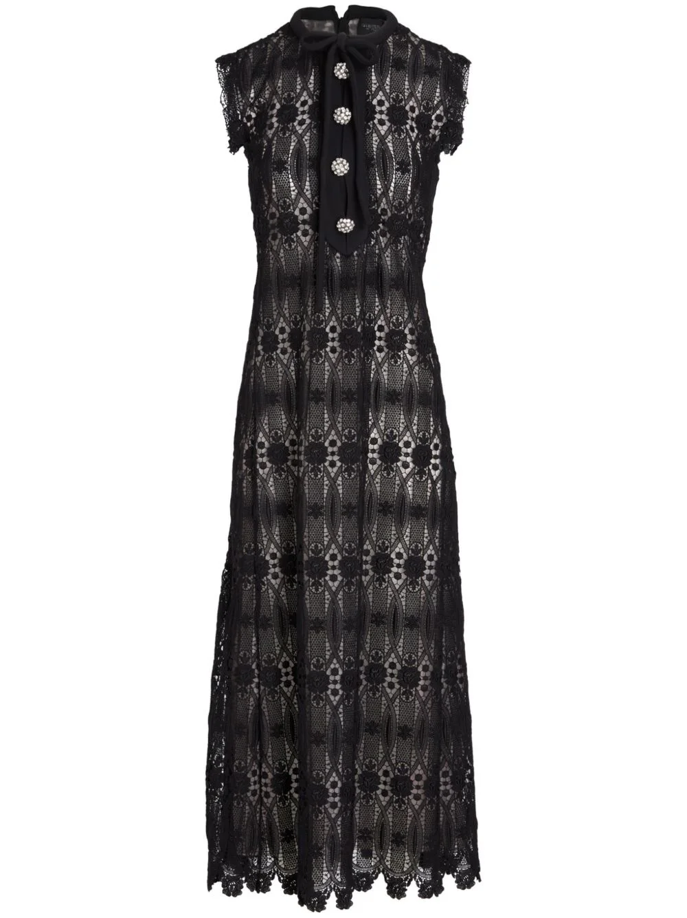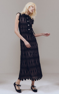 Macramé Embroidered Lace Midi Dress black