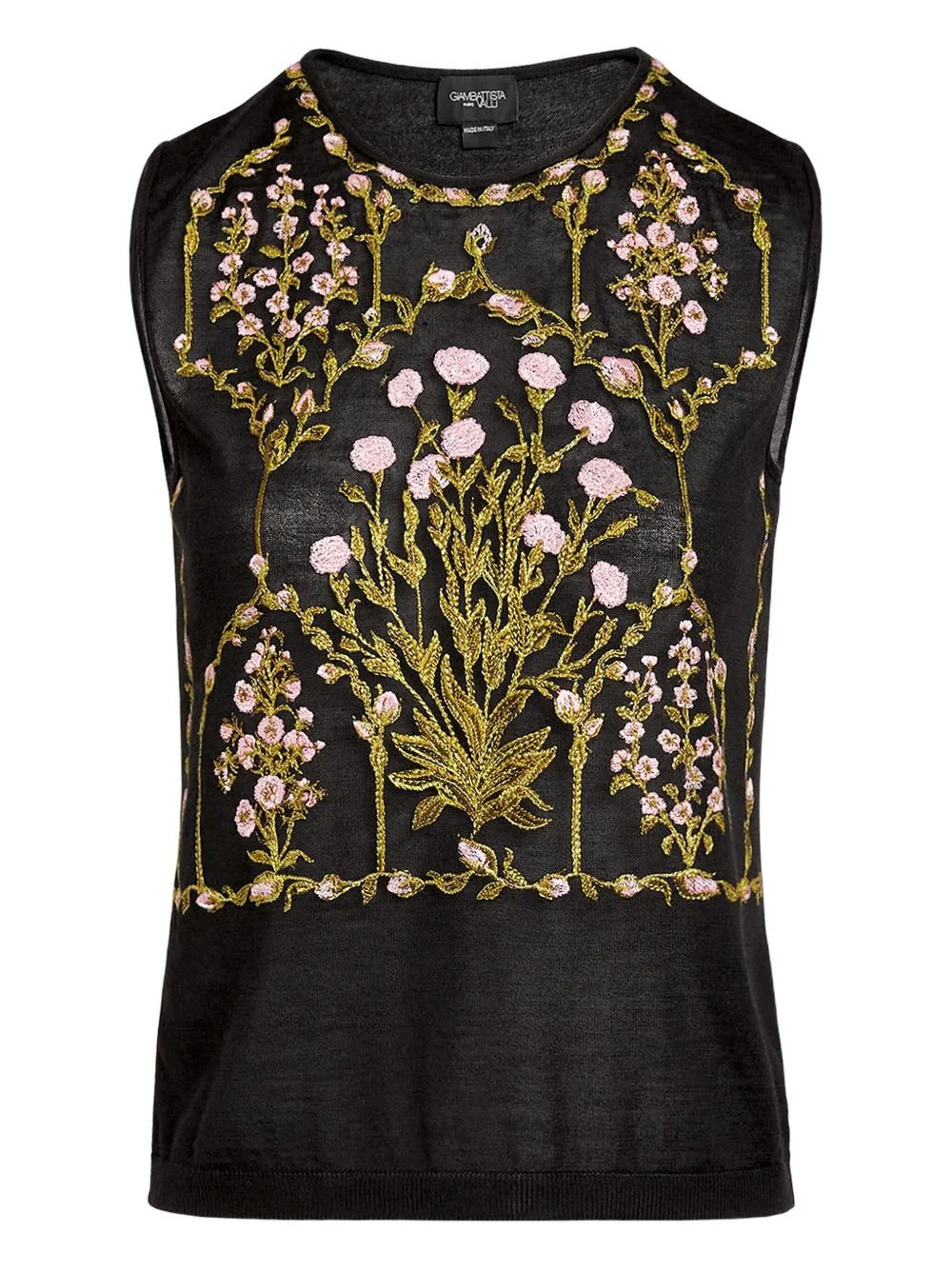embroidered sleeveless top Highlights - Black - Floral embroidery - Sleeveless - Round neck Made in Italy Composition Cashmere 70%, Silk 30% Washing instructions Read Manufacturer Guidelines