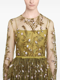 embroidered tulle long dress Highlights - Olive green - Floral embroidery - Long sleeves - Round neck - Pleated skirt Made in Italy Composition Polyester 68%, Polyamide 32% Washing instructions Read Manufacturer Guidelines