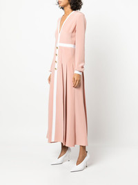 empire line silk maxi dress seashell/rose silk pleat detailing contrasting trim plunging V-neck long sleeves front button fastening empire line A-line skirt straight hem concealed rear zip fastening Made in Italy Composition Outer: Acetate 65%, Silk 35% Lining: Silk 100% SIZE & FIT Model measurements Height 5 ft 10 in(1.77 m) Bust/Chest 31.88 in(81 cm) Hips 34.64 in(88 cm) Waist 24.01 in(61 cm) FittingInformation This piece fits true to size. We recommend you get your regular size Designed for a close fit at the bust, waist and hips Made with a mid-weight fabric Washing instructions Dry Clean Only