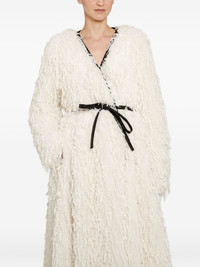 feathery-fringe wrap coat