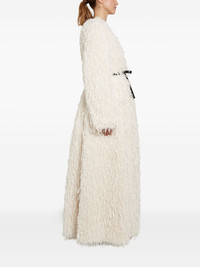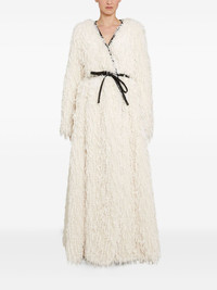 feathery-fringe wrap coat Highlights - Ivory - Feathery fringe - Wrap fastening - Long sleeves - Self-tie belt - A-line Made in Italy Composition Polyester 100% Washing instructions Read Manufacturer Guidelines