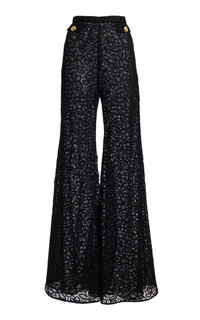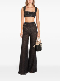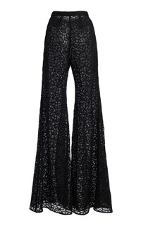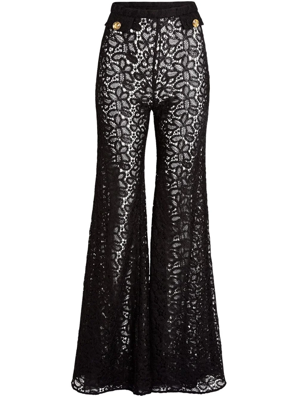 PRODUCT DETAILS - Resort '25 - High-waisted, slim to flare, wide-cut at bottom, sheer lace - Unlined - Composition: Lace - Color: black - Button and concealed zip fastening - Made in Italy