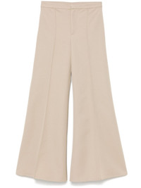 flared trousers Highlights - Beige - Concealed front button, hook and zip fastening - Two rear patch pockets - Seam detailing - Pressed crease Made in Italy Composition Cotton 61%, Polyester 39%