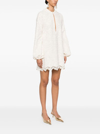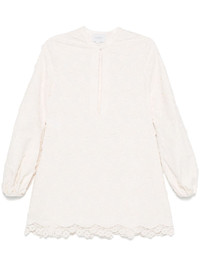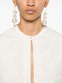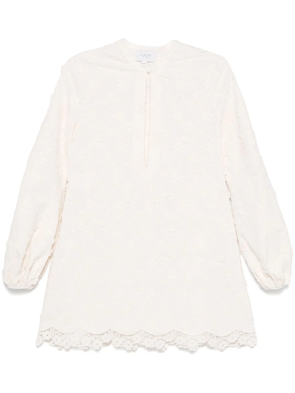 floral-applique mini dress Highlights - White - Front button fastening - Keyhole neck - Long puff sleeves - Side slits Made in Italy Composition Polyester 51%, Cotton 49% SIZE & FIT Model measurements Height 5 ft 10 in(1.77 m) Bust/Chest 31.88 in(81 cm) Hips 36.22 in(92 cm) Waist 24.01 in(61 cm) FittingInformation Designed to be fitted across the shoulders, becoming looser as it falls Made from a midweight non-stretch fabric Washing instructions Machine Wash