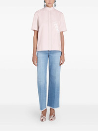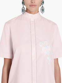 floral-applique shirt Highlights - Light pink - Front button fastening - Collarless - High neck - Short sleeves Made in Italy Composition Cotton 96%, Polyester 4%
