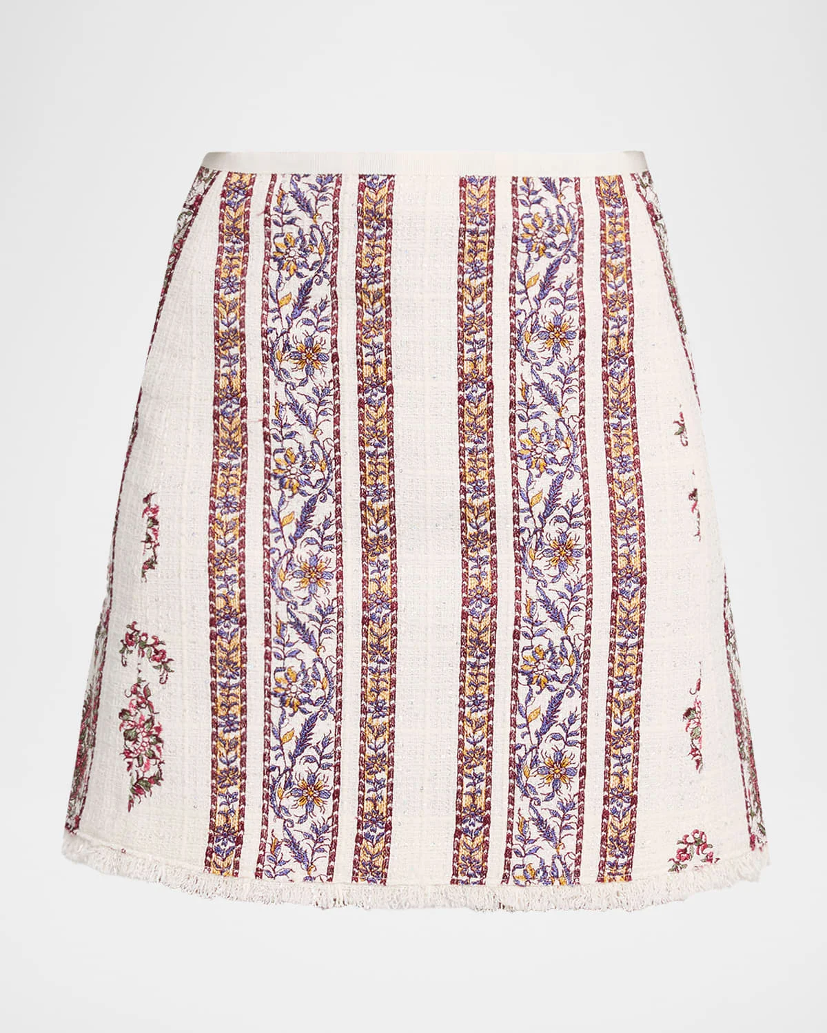 Crafted of & nbsp;boucle, this skirt from Giambattista Valli features & nbsp;a floral pattern and eyelash-fringed hem High waist A-line silhouette Mini length Invisible back zip Cotton/polyester/acetate Dry clean Made in Italy