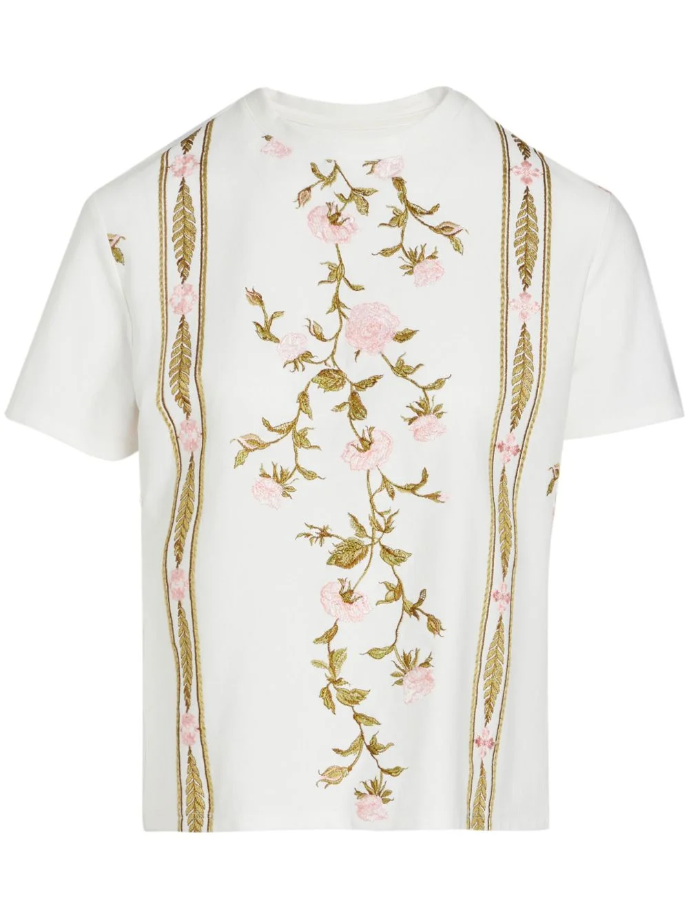 floral-embroidered cotton T-shirt Highlights - White/multicolour - Cotton blend - Jersey texture - Embroidered design - Crew neck - Short sleeves - Straight hem Made in Italy Composition Cotton 89%, Polypropylene 11% Washing instructions Dry Clean Only