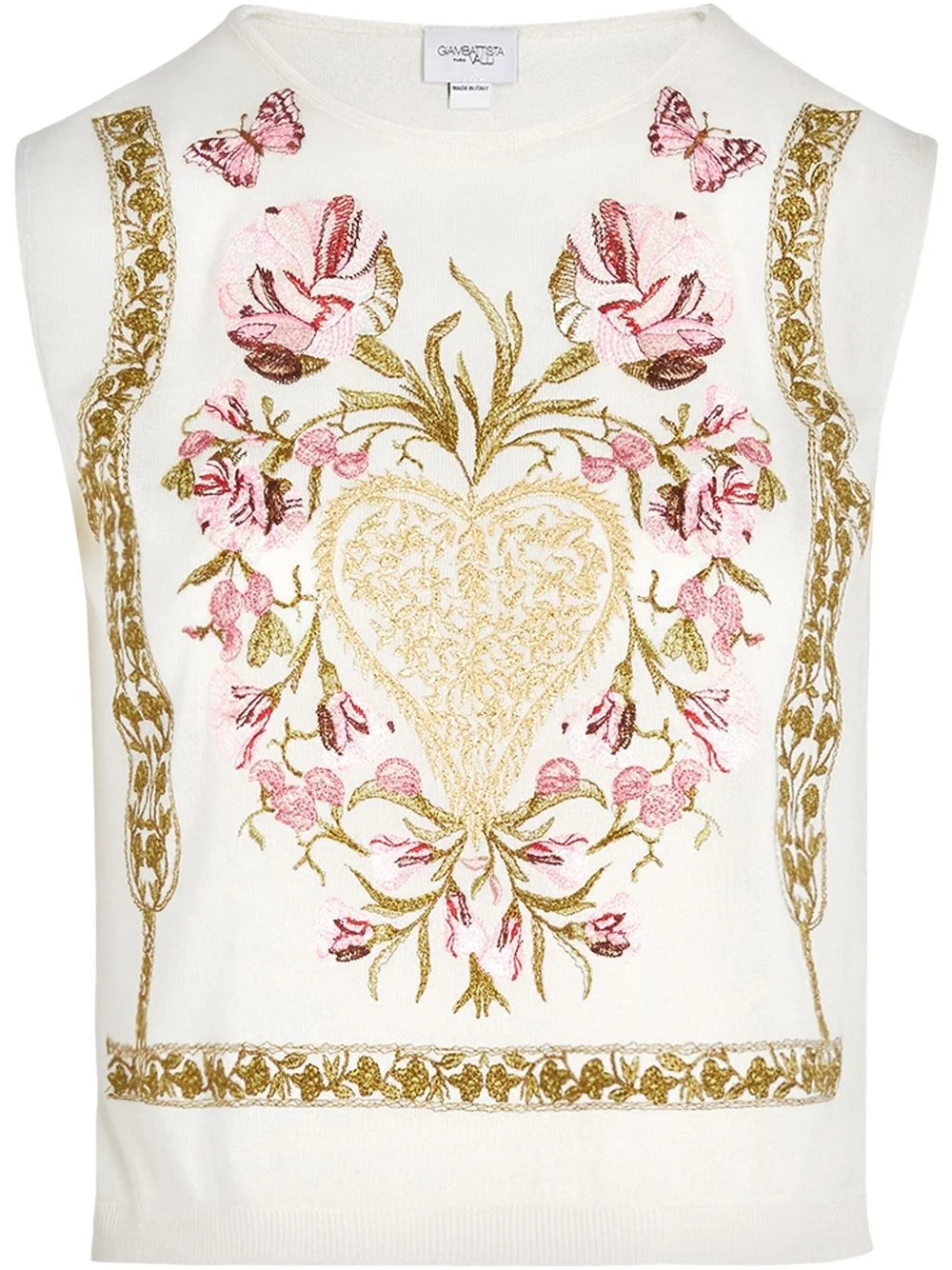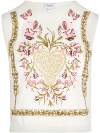floral-embroidered tank top Highlights - White - Heart motif - Round neck - Sleeveless - Straight hem Made in Italy Composition Cashmere 70%, Silk 30%