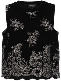floral-embroidered tank top Highlights - Black/ivory - Wool-cotton blend - Tweed - All-over floral embroidery - Crew neck - Scallop hem - Concealed zip fastening at the shoulder - Silk lining Made in Italy Composition Outer: Polyamide 55%, Virgin Wool 45%, Cotton 30%, Polyester 10%, Viscose 10% Lining: Silk 100% SIZE & FIT Model measurements Height 5 ft 9 in(1.76 m) Bust/Chest 31.1 in(79 cm) Hips 35.03 in(89 cm) Waist 24.4 in(62 cm) FittingInformation Designed for a slim fit that sits just away from the body offering a close yet comfortable fit Made from a midweight non-stretch fabric This piece fits true to size – take your usual size