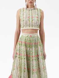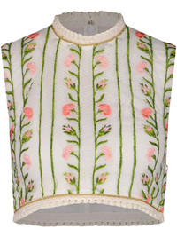 floral-embroidered top This sleeveless top from Giambattista Valli is a lesson in delicate motifs and intricate detailing. Colourful floral embroidery takes centre stage, while slender gold-tone chains line the neck and hem for a jewellery-inspired finish. Highlights - White/multicolour - All-over floral embroidery - Braided edge - Crew neck - Sleeveless - Cropped - Rear zip fastening - Gold-tone hardware Made in Italy Composition Polyester 63%, Polyamide 37% Washing instructions Dry Clean Only