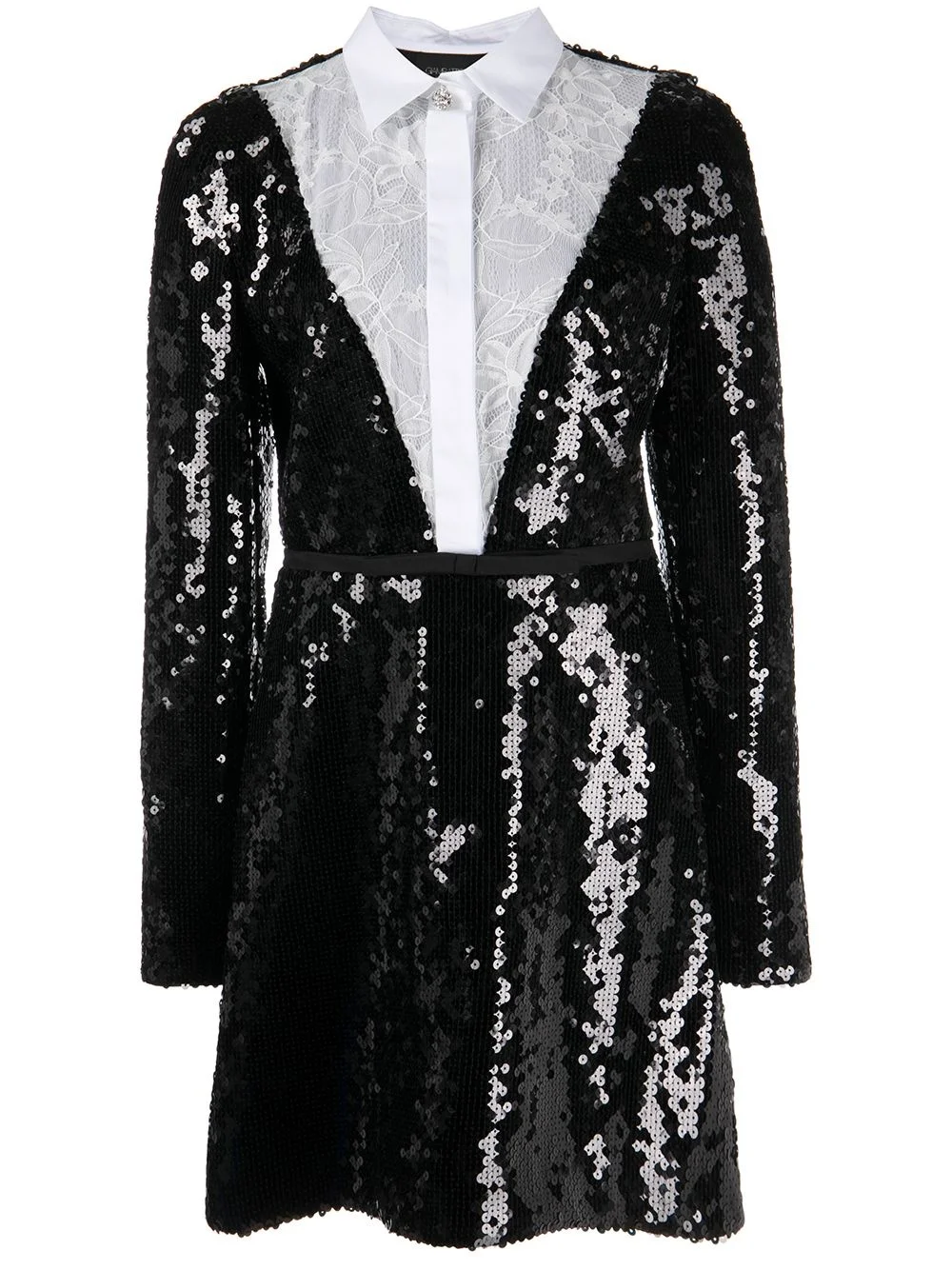 floral lace shirt sequinned dress Giambattista Valli's playful aesthetic is captured on this eye-catching sequinned dress that features a lavish floral lace shirt insert for a distinct design twist. Made in Italy Composition Body: Polyester 100% SIZE & FIT Model measurements Height 5 ft 10 in(1.77 m) Bust/Chest 33.85 in(86 cm) Hips 35.03 in(89 cm) Waist 24.01 in(61 cm) FittingInformation This piece fits true to size. We recommend you get your regular size Cut for a slim fit Made with a mid-weight fabric