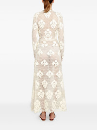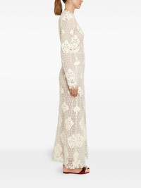 floral-macrame midi dress Highlights - Ivory - Macrame effect - Long sleeves - Floral pattern - Round neck - Scalloped hem Made in Italy Composition Wool 43%, Acrylic 43%, Polyester 14% Washing instructions Read Manufacturer Guidelines