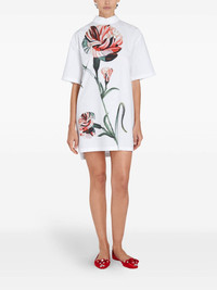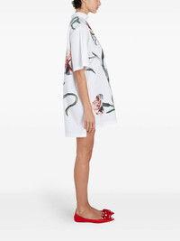 floral-print blouse Highlights - White - Concealed rear hook and zip fastening - High neck - Short sleeves - Extra-long length Made in Italy Composition Cotton 100%