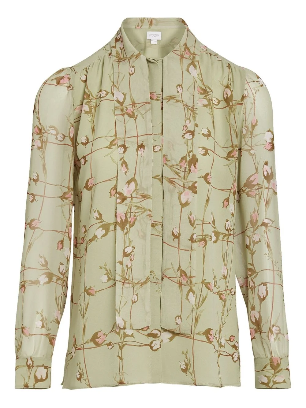 floral-print blouse Highlights - Light green - Floral print - Pussy-bow collar - Long sleeves - Button fastening - Buttoned cuffs Made in Italy Composition Silk 100% Washing instructions Read Manufacturer Guidelines