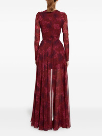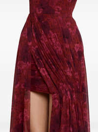 floral-print draped maxi dress Highlights - Dark-red - Floral print - Long sleeves - Round neck - Draped skirt - Thigh-high split Made in Italy Composition Silk 100% Washing instructions Read Manufacturer Guidelines