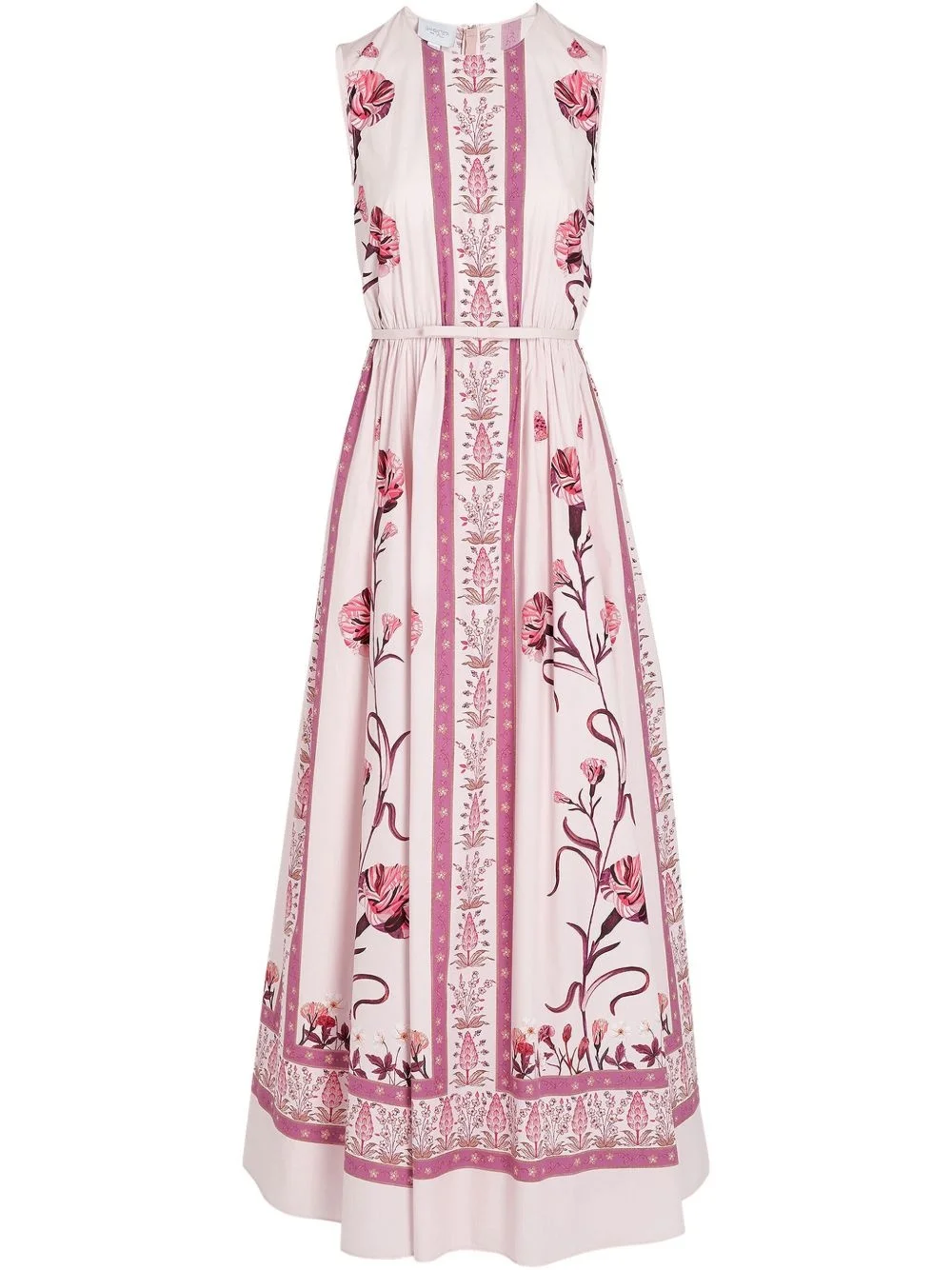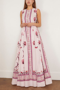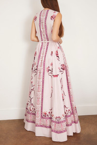 The Giambattista Valli Dress in Rose/Multi is a stunning piece from their Spring 25 Collection. This maxi dress features a fitted bodice and flowing skirt in a beautiful carnation print. Wear yours with heels and a clutch. FIT DESCRIPTION MODEL MEASUREMENTS - Maxi length - Fit and flare silhouette - Belted waist - Crew neckline - Organza lining - Concealed zipper - 100% cotton