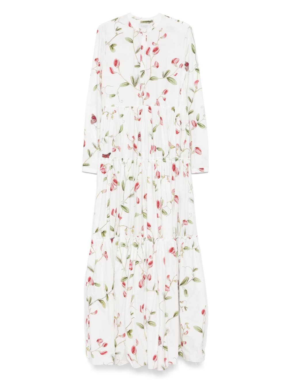 floral-print maxi dress Highlights - White - Front button fastening - Buttoned cuffs - Long sleeves - Tiered skirt Made in Italy Composition Cotton 100%