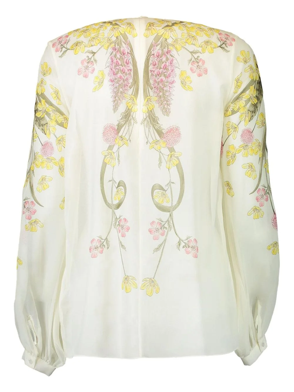 floral-print pleated blouse Highlights - Ivory - Floral print - Pleated neckline - Long sleeves Made in Italy Composition Silk 100%