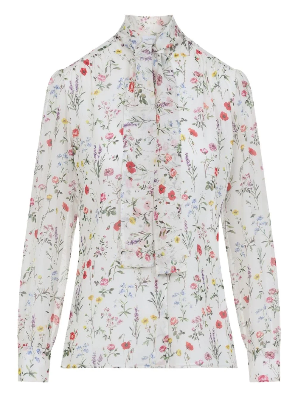 floral-print shirt Highlights - White - Floral print - High neck - Button front - Long sleeves - Ruffle detailing Imported Composition Silk 100%
