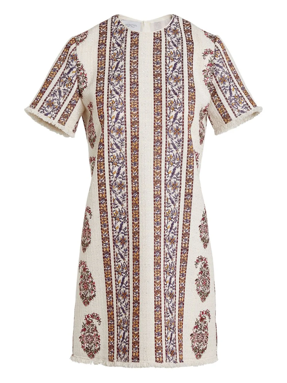fringed patterned mini dress Highlights - White - Patterned design - Fringed trim - Short sleeves - Round neck - Rear zip fastening Made in Italy Composition Fabric 100% Washing instructions Dry Clean Only