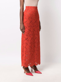 high-waist floral-embroidered skirt burnt orange high waist all-over floral embroidery rear zip fastening rear slit long length Imported Composition Acrylic 62%, Wool 38% SIZE & FIT Model measurements Height 5 ft 10 in(1.77 m) Bust/Chest 34.64 in(88 cm) Hips 35.43 in(90 cm) Waist 24.8 in(63 cm) Washing instructions Dry Clean Only