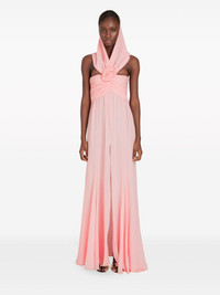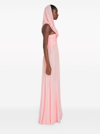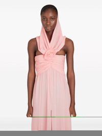 hooded floral-applique silk gown Taking shape through an interplay of draping and gathering, this light-pink Giambattista Valli gown is a sublime expression of the maison's masterful technique and penchant for intricate designs. Crafted from silk, it's finished with a matching hood. Highlights - Rose pink - Silk - Floral applique - Classic hood - Strapless - Maxi Made in Italy Composition Silk 100% Washing instructions Dry Clean Only