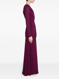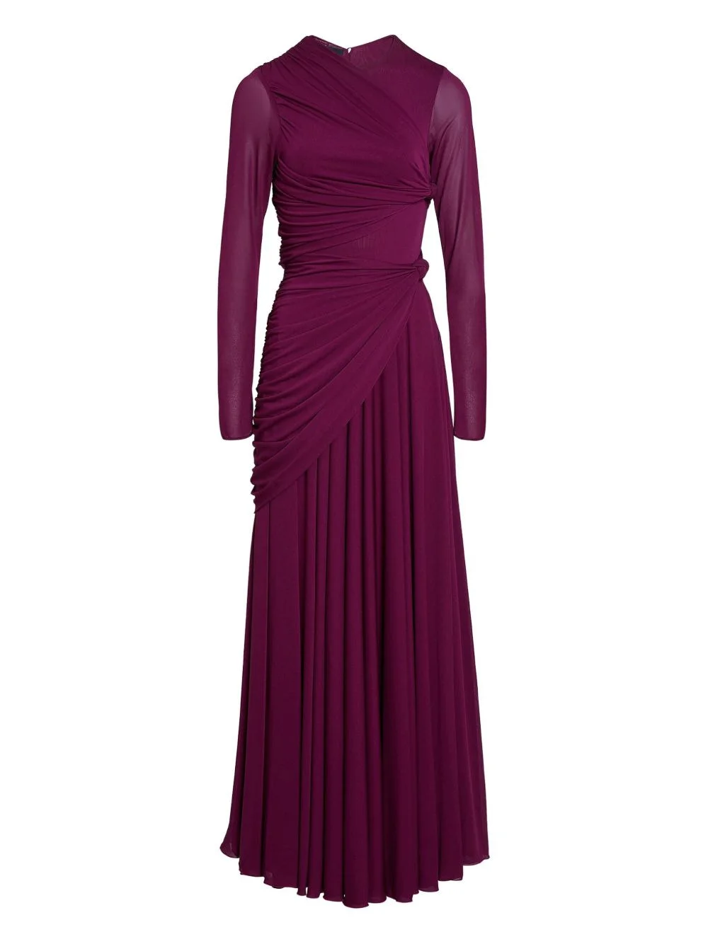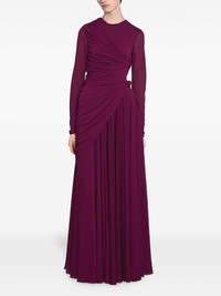 draped long-sleeve maxi dress Highlights - Purple - Draped bodice - Long sleeves - Gathered waist - Knot detail - Maxi length Made in Italy Composition Viscose 100% Washing instructions Read Manufacturer Guidelines