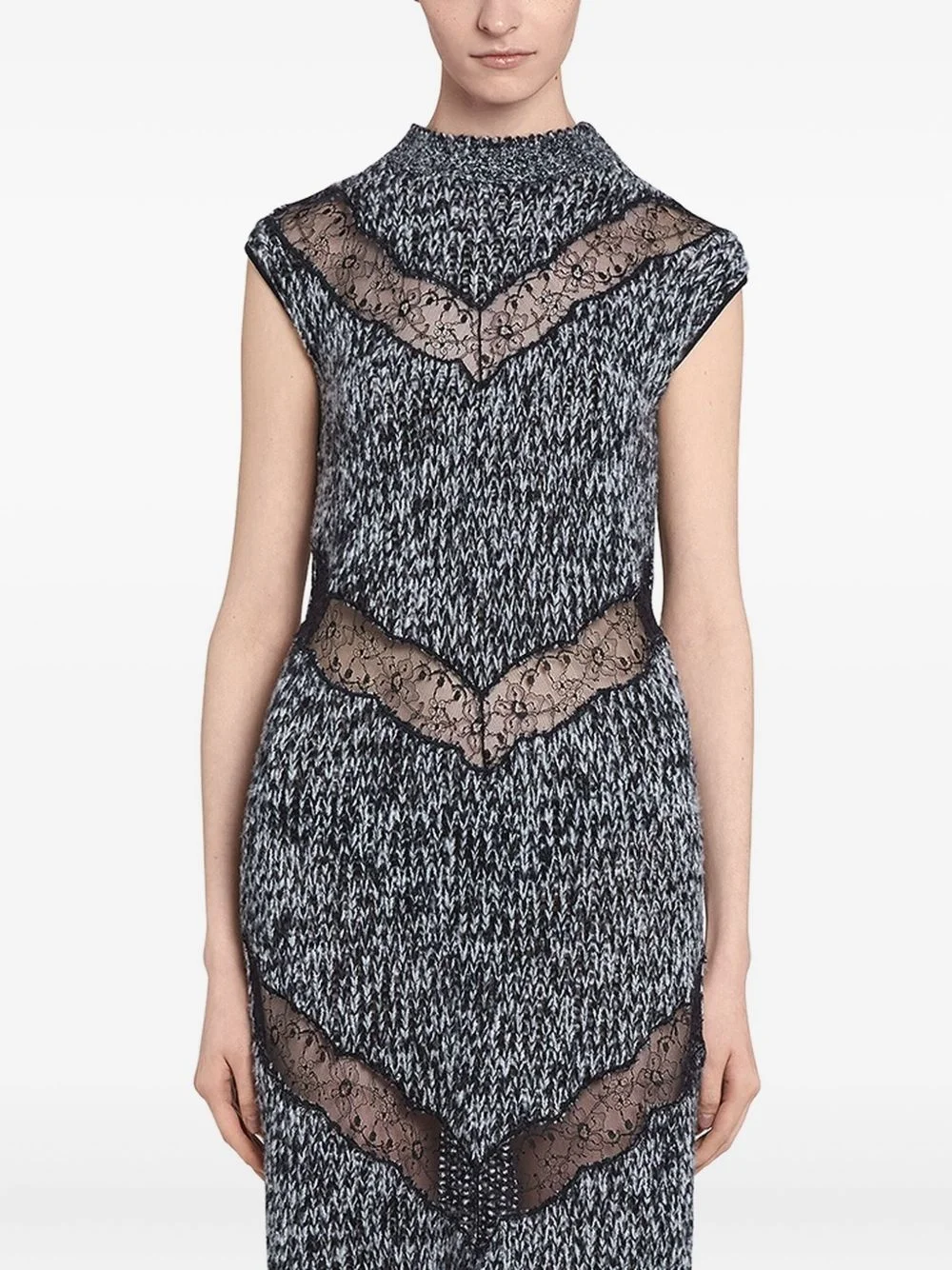 lace-insert dress Highlights - Grey - Mockneck - Sleeveless - Lace panels - V-shaped inserts Made in Italy Composition Wool 57%, Cashmere 28%, Polyamide 15% Washing instructions Read Manufacturer Guidelines