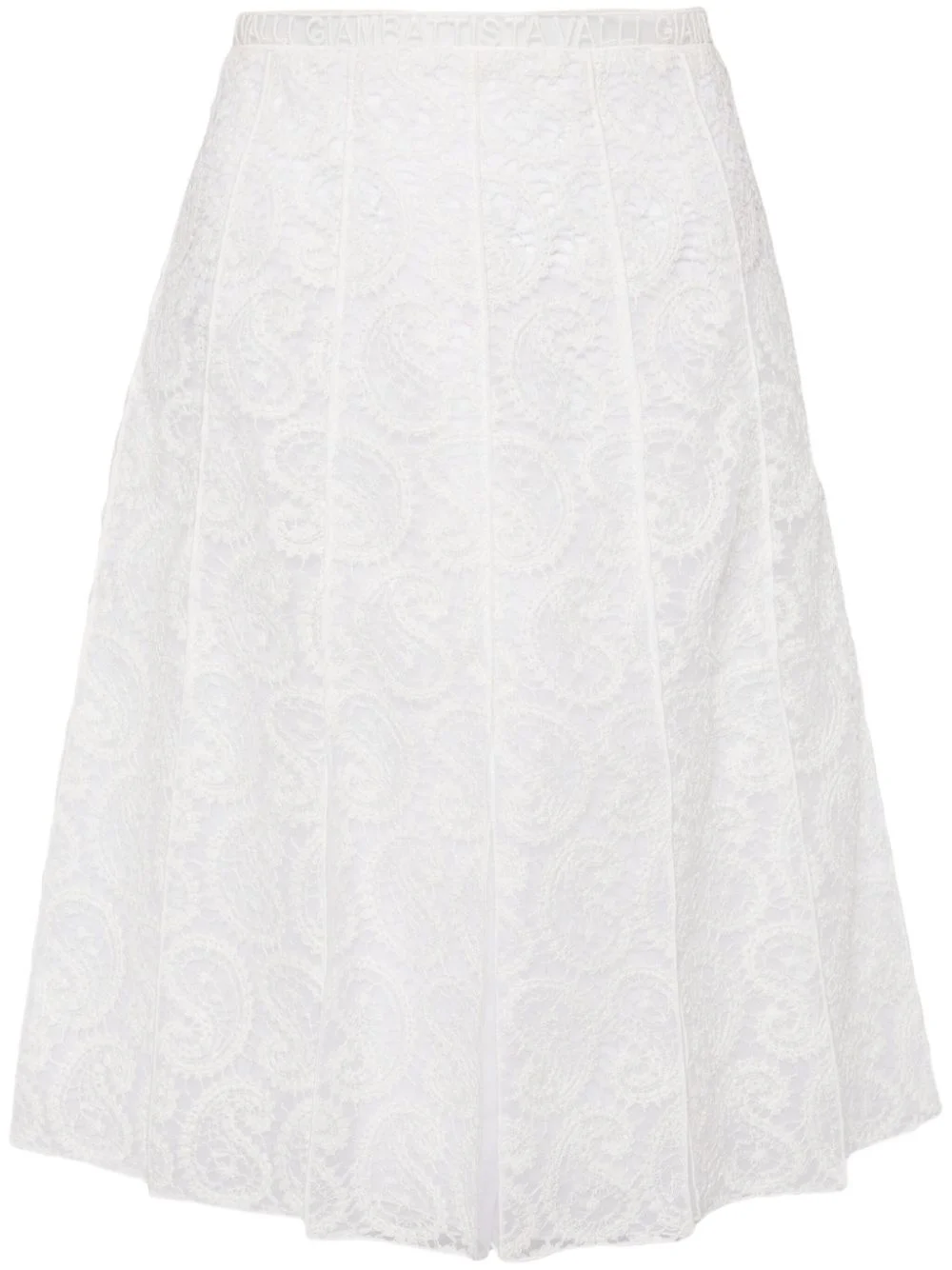 pleated lace skirt Highlights - White - Silk - Pattern-lace detailing - Fully pleated - High-waisted - Concealed rear zip fastening - A-line - Cotton lining - Straight hem - Mid-length Made in Italy Composition Outer: Polyester 100%, Cotton 85% Lining: Silk 100%