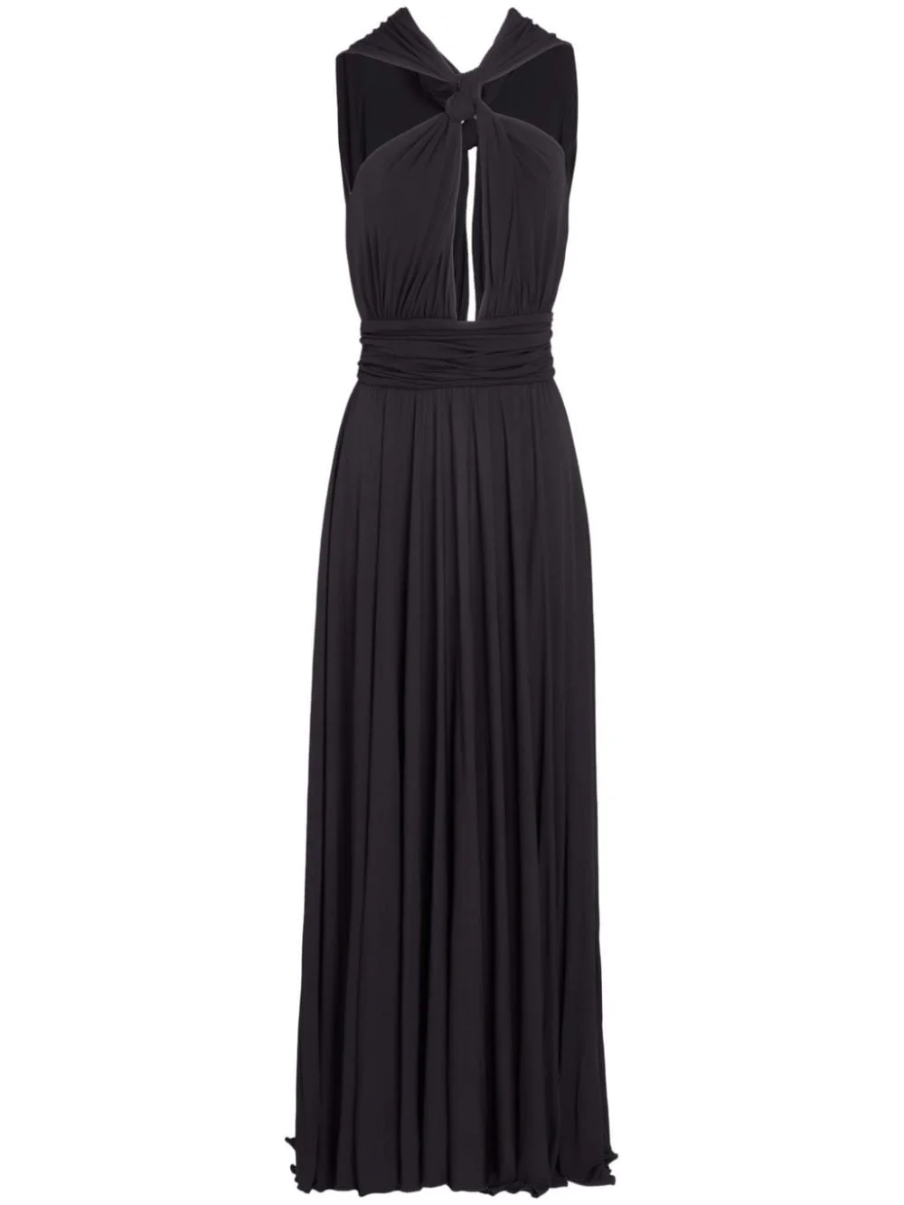 Laced knot-detail maxi dress Highlights - Black - Knot detailing - Cut-out detailing - Halterneck - Sleeveless - Flared skirt - Concealed rear zip fastening - Rear button fastening - Floor-length Made in Italy Composition Viscose 100% Washing instructions Dry Clean Only
