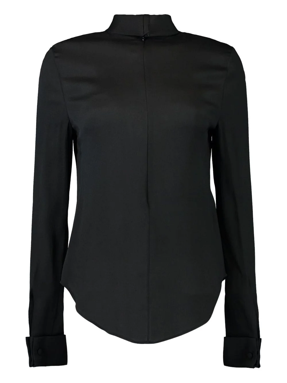 long-sleeve mock-neck shirt Highlights - Black - Long sleeves - Mock neck - Buttoned cuffs - Concealed zip fastening - Curved hem Made in Italy Composition Acrylic 73%, Silk 27% Washing instructions Read Manufacturer Guidelines