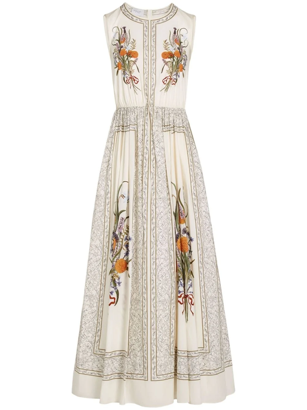 Marigold Bouquets-print poplin dress Highlights - Ivory white - Concealed rear zip fastening - Round neck - Sleeveless - Flared skirt Made in Italy Composition Cotton 100%
