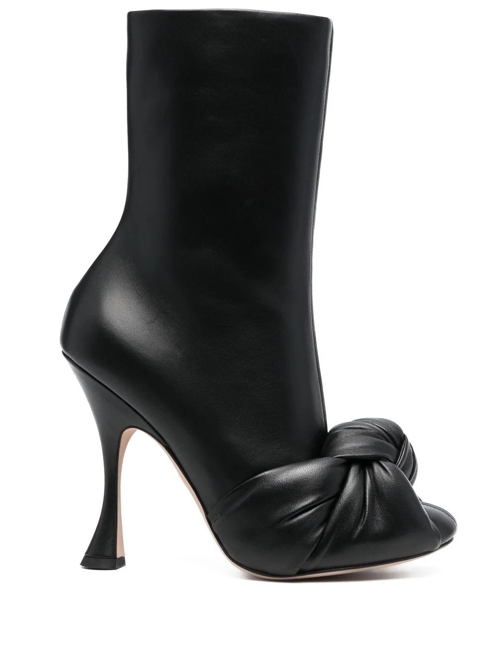 maxi bow-embellished 110mm ankle boots Showcasing Giambattista Valli's modern leatherwork, this pair of calf leather boots is defined by a maxi bow to the front. The intricate folds offer a textured finish and contrast against the smooth upper. Made in Italy Composition Sole: Calf Leather 100% Outer: Calf Leather 100% Lining: Calf Leather 100% SIZE & FIT Measurement CIRCUMFERENCE 8.66 in(22 cm) HEEL 5.11 in(13 cm) HEIGHT 7.48 in(19 cm) Sole height 0.59 in(1.5 cm)