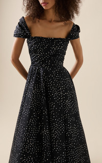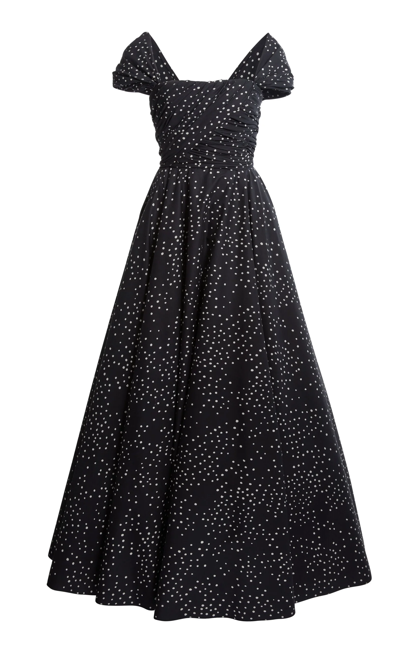 PRODUCT DETAILS - Slim fit, off-the-shoulder short sleeves, square neck - Back zipper fastening - Composition: Popeline Print - Color: black/ivory - Dry clean - Pre Fall '25