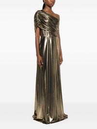 one-shoulder ruched dress Highlights - Gold-tone - One-shoulder design - Ruched detailing - Floor-length - Sleeveless Imported Composition Fabric 100% SIZE & FIT Model measurements Height 5 ft 8 in(1.73 m) Bust/Chest 29.92 in(76 cm) Hips 33.07 in(84 cm) Waist 23.22 in(59 cm) Washing instructions Read Manufacturer Guidelines