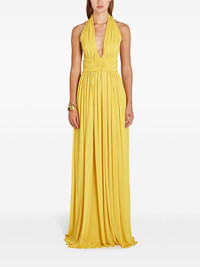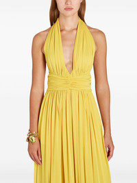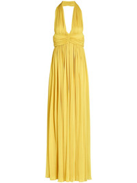 open-back maxi dress Highlights - Lemon yellow - Concealed rear zip fastening - Two side slit pockets - Halterneck - Pleated skirt Made in Italy Composition Viscose 80%, Silk 20% Washing instructions Dry Clean Only
