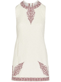 paisley mini dress Highlights - White - Cotton blend - Boucle design - Paisley print - Rear zip fastening - Round neck - Sleeveless - Two side slit pockets - Straight hem Made in Italy Composition Cotton 66%, Nylon 21%, Viscose 13% Washing instructions Dry Clean Only