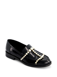 pearl-embellished leather loafers Highlights - Black - Leather - Pearl detailing - Round toe - Slip-on style - Low heel - Flat sole Made in Italy Composition Sole: Leather 100% Outer: Leather 100% Lining: Leather 100%