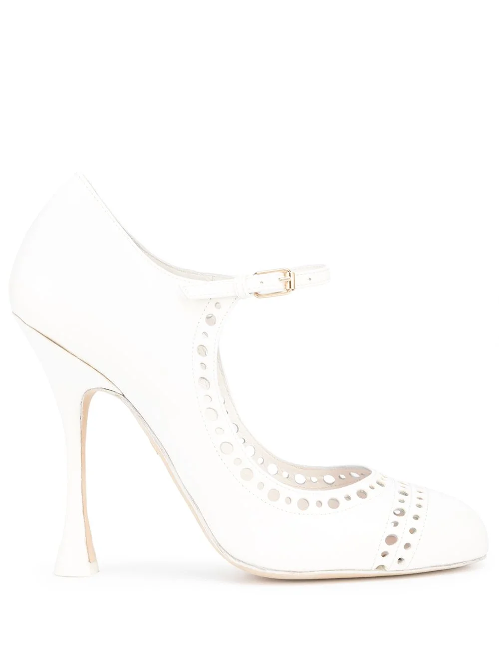 perforated leather Mary-Jane pumps white calf leather perforated design round toe strap and buckle fastening high heel Made in Italy Composition Outer: Calf Leather 100% Sole: Leather 100% SIZE & FIT Measurement HEEL 4.33 in(11 cm) Washing instructions Specialist Cleaning