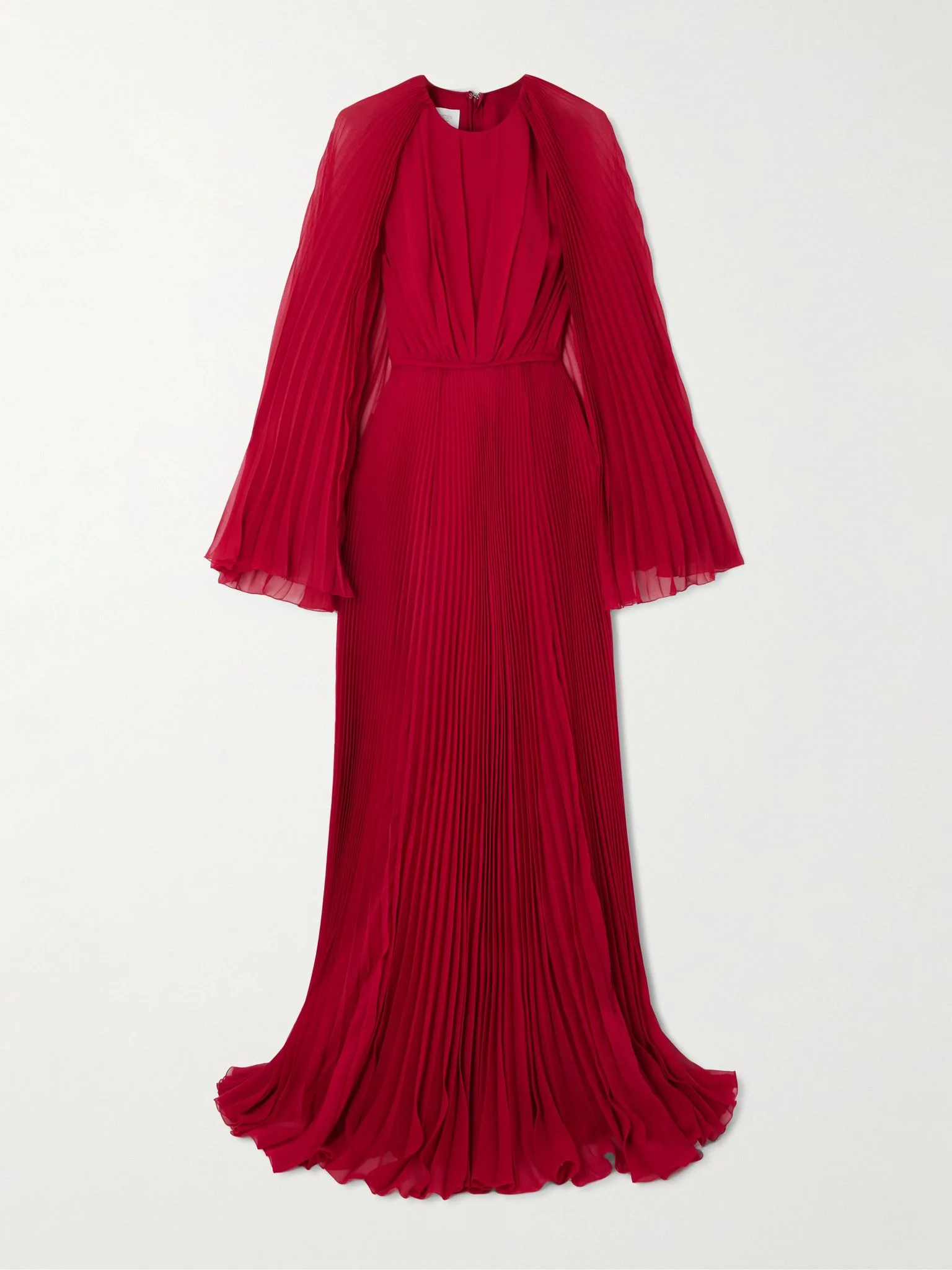 Giambattista Valli's exquisite eveningwear is designed to make you feel confident and empowered. In a bold red shade, this gown is made from plisse silk-georgette and has a sweeping cape-effect back panel that drapes over your shoulders. Wear it with towering heels to your next event. Size & Fit - Fits true to size, take your normal size - Designed to be slightly fitted at the bust and waist, loose at the hip - Lightweight, fluid, non-stretchy fabric - Model is 177cm/ 5'10" and is wearing an IT 40 Model measurements: - Bust: 85cm/ 33.5” - Waist: 63cm/ 25” - Hip: 90cm/ 35.5” Details & Care - Red silk-georgette - Concealed hook and zip fastening at back - 100% silk - Partially lined - Dry clean