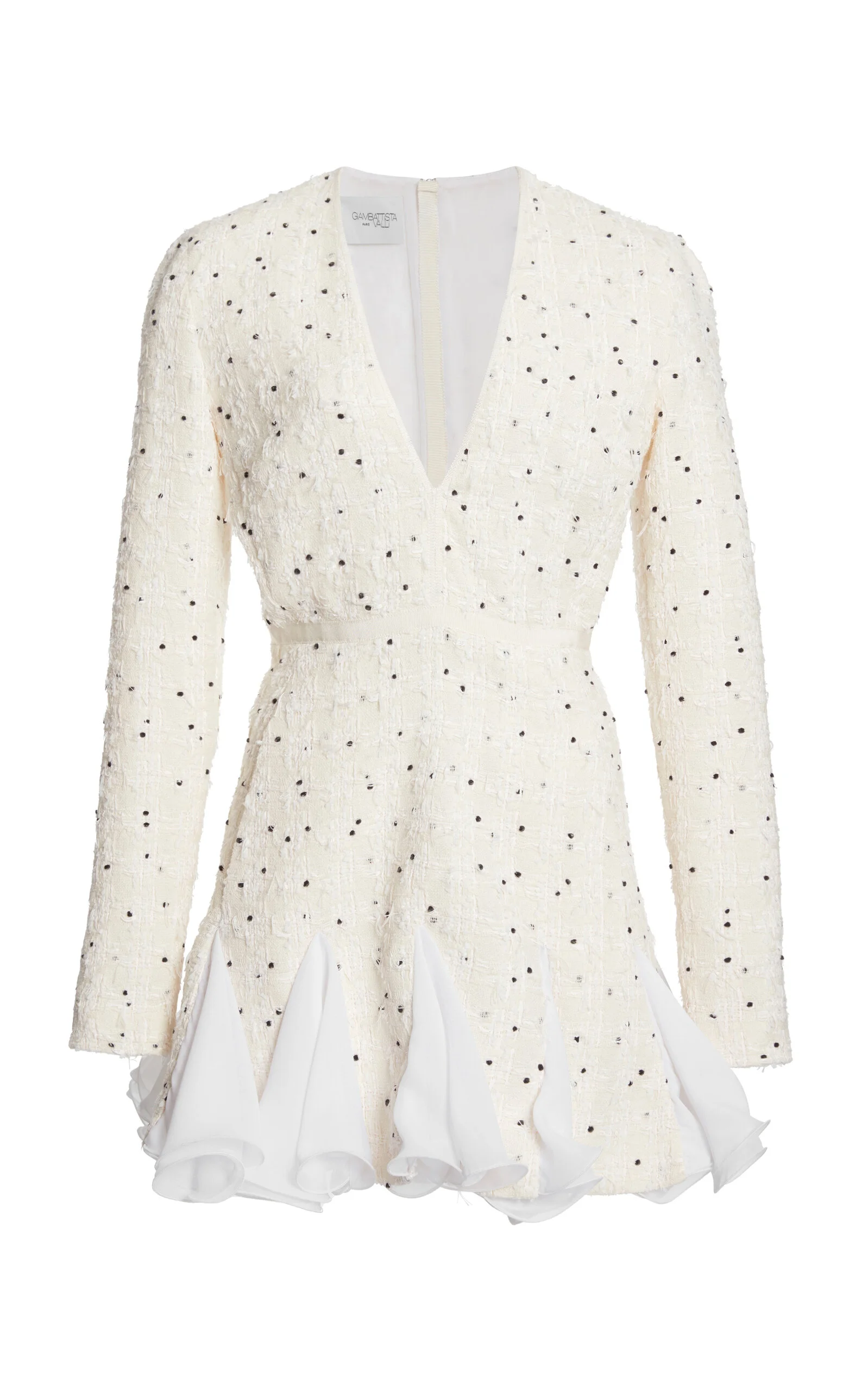 PRODUCT DETAILS - Slim fit, long sleeves, V-neck - Back zipper fastening - Composition: Boucle - Color: ivory - Dry clean - Pre Fall '25