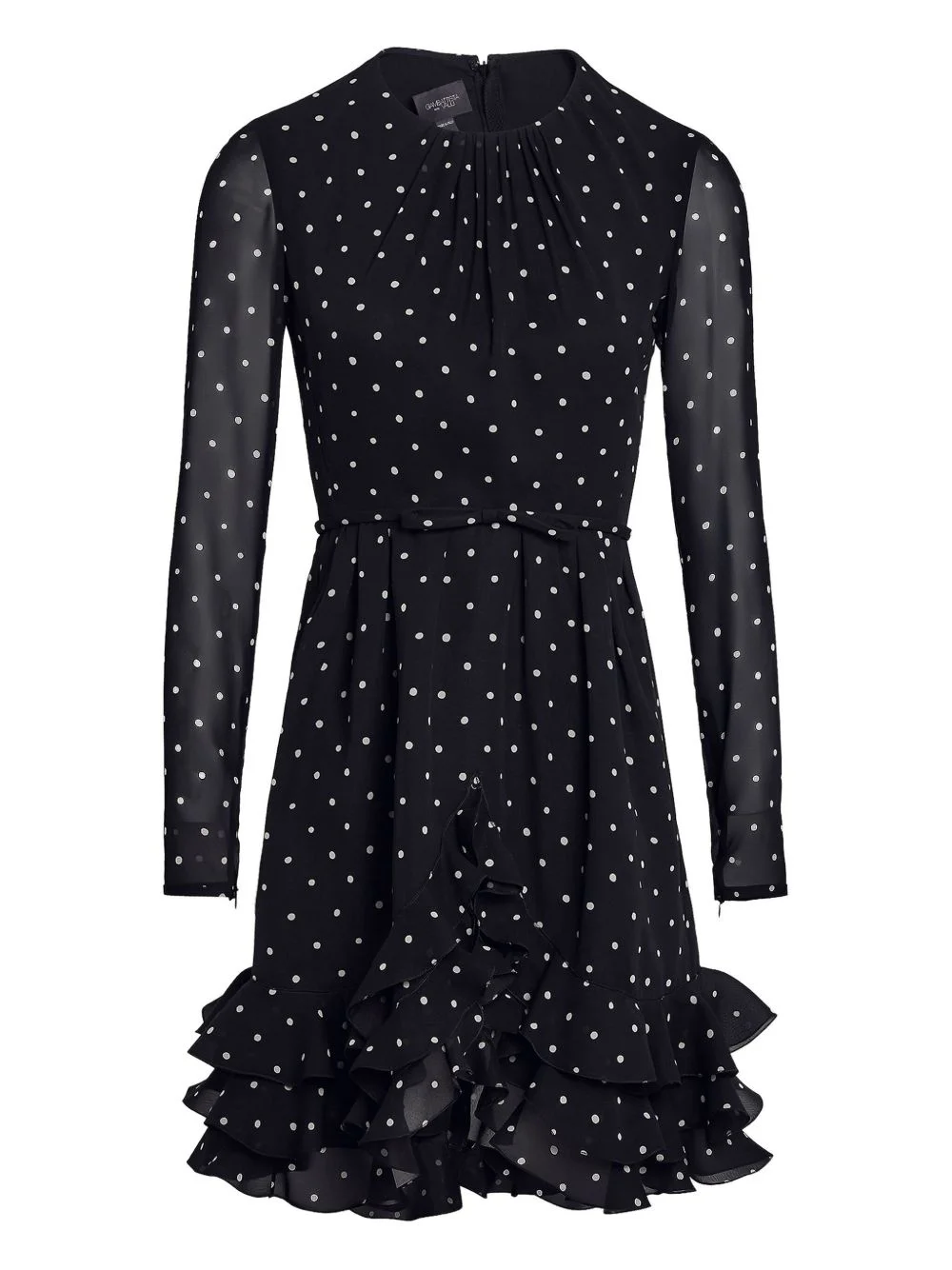 polka-dot ruffled dress Highlights - Black - White polka dot print - Tiered ruffles - Long sleeves - Round neck Made in Italy Composition Silk 100% Washing instructions Read Manufacturer Guidelines