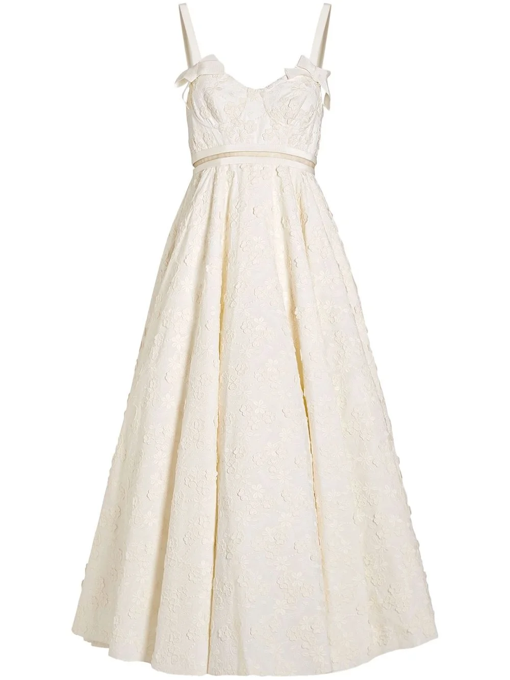 popeline midi-dress Highlights - White - Concealed rear zip fastening - Thin shoulder straps - Floral embroidery - Bow detailing Made in Italy Composition Cotton 100% SIZE & FIT FittingInformation This piece fits small – take one size up. If you have a fuller chest you may wish to take a further size up Washing instructions Dry Clean Only