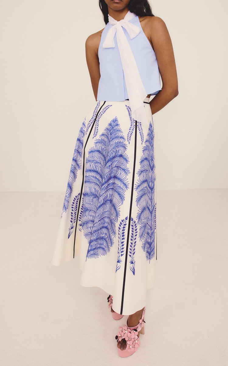 Printed Cotton Poplin Maxi Skirt ivory